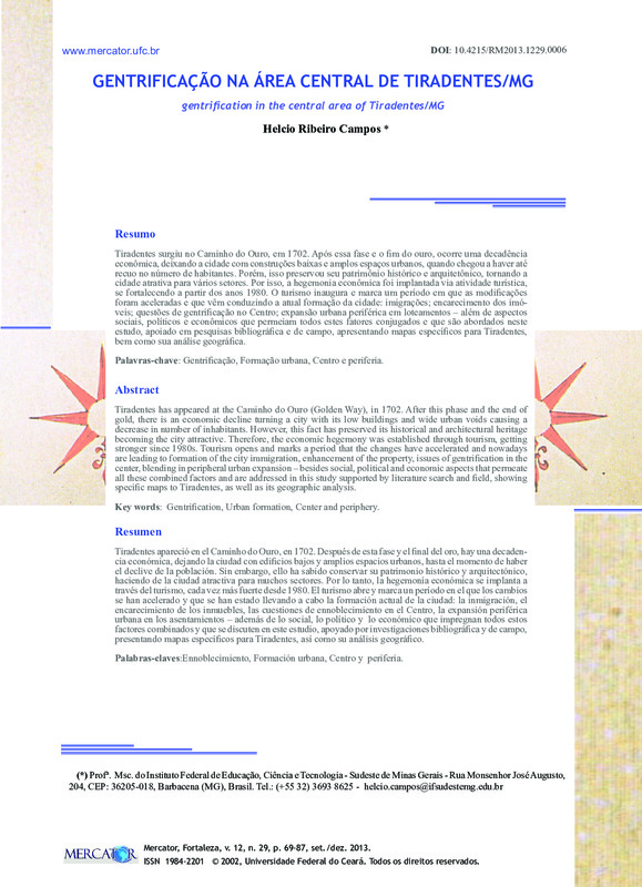 GENTRIFICAÇÃO NA ÁREA CENTRAL DE TIRADENTES/MG (gentrification in the central area of Tiradentes/MG)