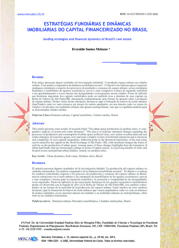 ESTRATÉGIAS FUNDIÁRIAS E DINÂMICAS IMOBILIÁRIAS DO CAPITAL FINANCEIRIZADO NO BRASIL (landing strategies and financial dynamics of Brazil’s real estate)