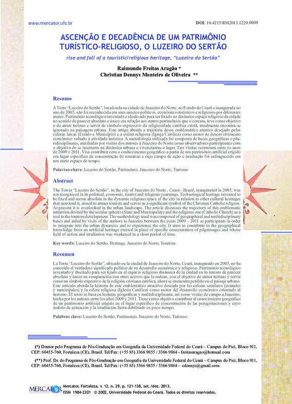 ASCENSÃO E DECADÊNCIA DE UM PATRIMÔNIO TURÍSTICO-RELIGIOSO, O LUZEIRO DO SERTÃO (rise and fall of a touristic/religious heritage, “Luzeiro do Sertão”)