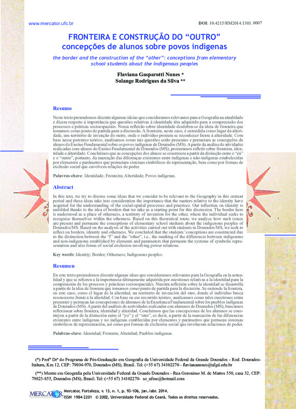 realizadas com alunos do Ensino Fundamental de Dourados (MS), procuramos refletir sobre fronteira, iden-