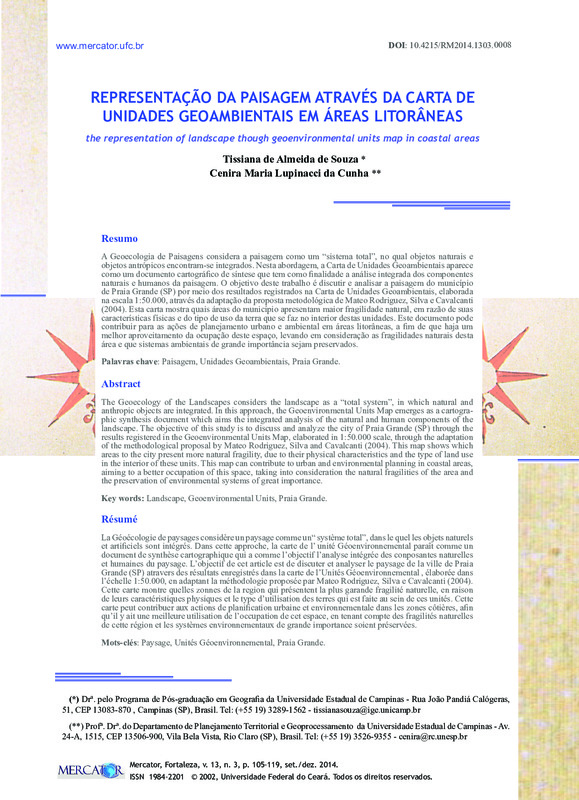 REPRESENTAÇÃO DA PAISAGEM ATRAVÉS DA CARTA DE UNIDADES GEOAMBIENTAIS EM ÁREAS LITORÂNEAS (the representation of landscape though geoenvironmental units map in coastal areas)