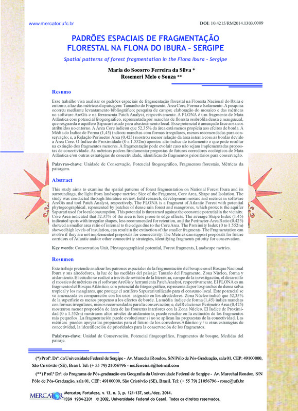 PADRÕES ESPACIAIS DE FRAGMENTAÇÃO FLORESTAL NA FLONA DO IBURA – SERGIPE (spatial patterns of forest fragmentation in the Flona Ibura – Sergipe)