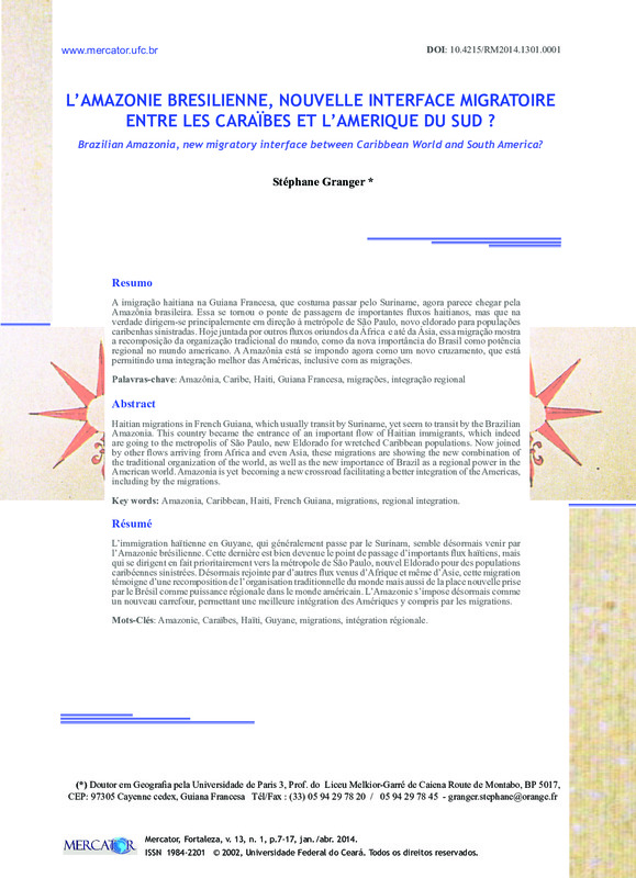 L’AMAZONIE BRESILIENNE, NOUVELLE INTERFACE MIGRATOIRE ENTRE LES CARAÏBES ET L’AMERIQUE DU SUD ? (Brazilian Amazonia, new migratory interface between Caribbean World and South America?)