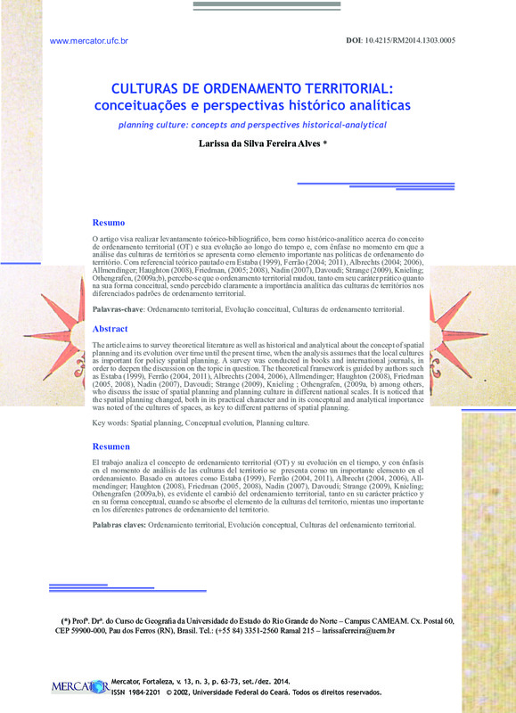 CULTURAS DE ORDENAMENTO TERRITORIAL: conceituações e perspectivas histórico analíticas (planning culture: concepts and perspectives historical-analytical)