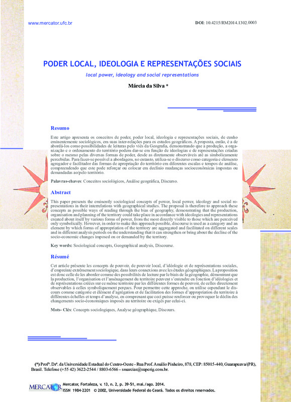 PODER LOCAL, IDEOLOGIA E REPRESENTAÇÕES SOCIAIS (local power, ideology and social representations)