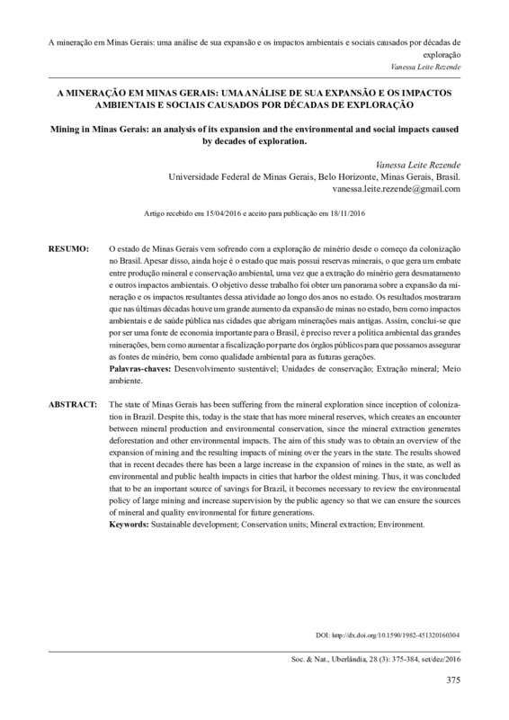 A mineração em Minas Gerais: uma análise de sua expansão e os impactos ambientais e sociais causados por décadas de exploração / Mining in Minas Gerais: an analysis of its expansion and the environmental and social impacts caused by decades of exploration