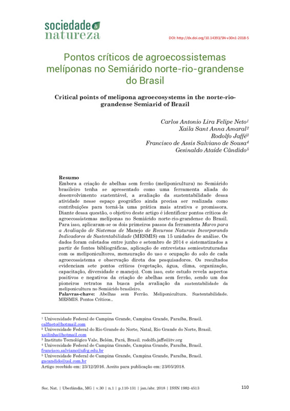 PONTOS CRÍTICOS DE AGROECOSSISTEMAS MELÍPONAS NO SEMIÁRIDO NORTE-RIO-GRANDENSE DO BRASIL
