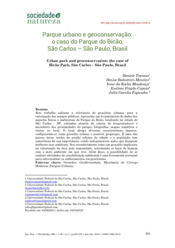 PARQUE URBANO E GEOCONSERVAÇÃO: O CASO DO PARQUE DO BICÃO, SÃO CARLOS – SP