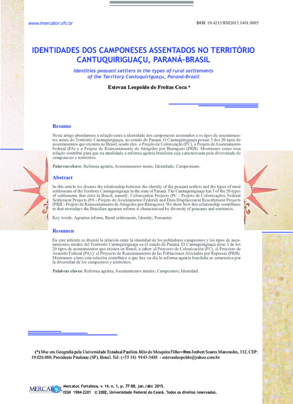 IDENTIDADES DOS CAMPONESES ASSENTADOS NO TERRITÓRIO CANTUQUIRIGUAÇU, PARANÁ-BRASIL (Identities peasant settlers in the types of rural settlements of the Territory Cantuquiriguaçu, Paraná-Brazil)