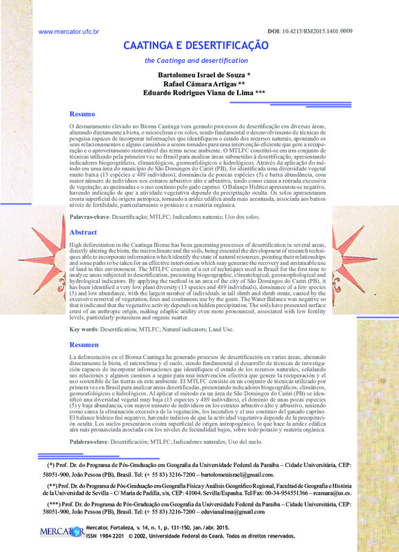 técnicas utilizado pela primeira vez no Brasil para analisar áreas submetidas à desertificação, apresentando