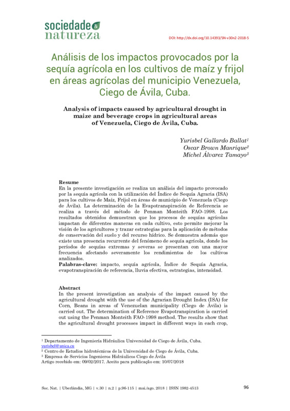 ANÁLISIS DE LOS IMPACTOS PROVOCADOS POR LA SEQUÍA AGRÍCOLA EN LOS CULTIVOS DE MAÍZ Y FRIJOL EN ÁREAS AGRÍCOLAS DEL MUNICIPIO VENEZUELA, CIEGO DE ÁVILA, CUBA