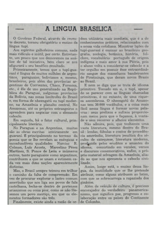 - A língua brasílica. A propósito do decreto da obrigatoriedade do ensino da língua tupi