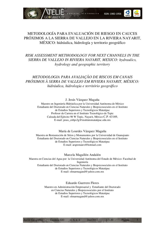 Metodología para evaluación de riesgo en cauces próximos a la Sierra de Vallejo en la Riviera Nayarit, México: hidráulica, hidrología y territorio geográfico - DOI 10.5216/ag.v6i4.21971