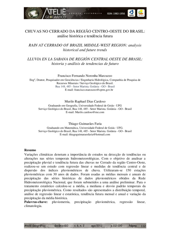 Chuvas no Cerrado da região Centro-Oeste do Brasil: análise histórica e tendência futura - DOI 10.5216/ag.v6i2.15234