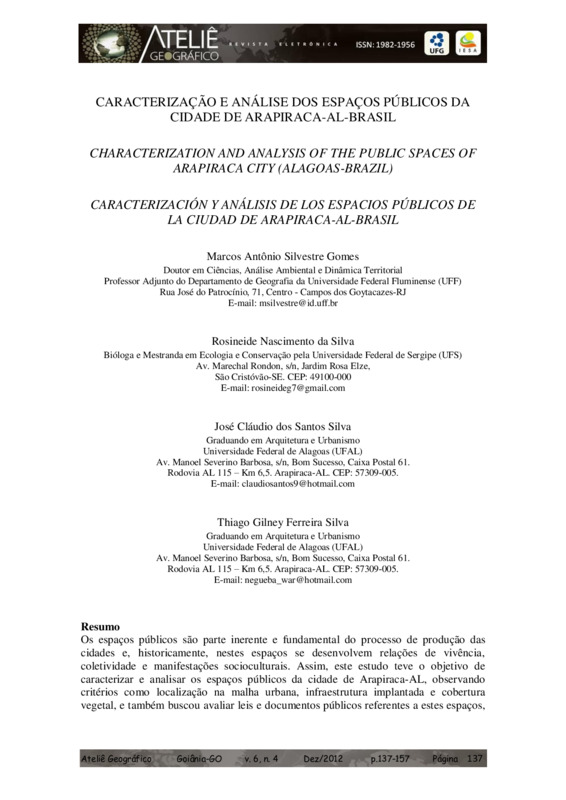 Caracterização e análise dos espaços públicos da cidade de Arapiraca-AL - DOI 10.5216/ag.v6i4.17854