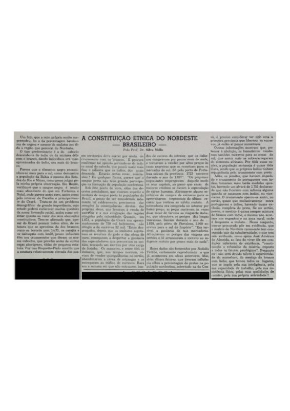 A constituição étnica do Nordeste Brasileiro. Tipo predominante: o caboclo