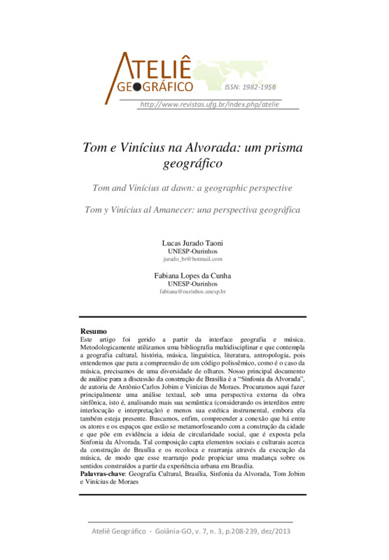 Tom e Vinícius na Alvorada: um prisma geográfico - DOI 10.5216/ag.v7i3.23582