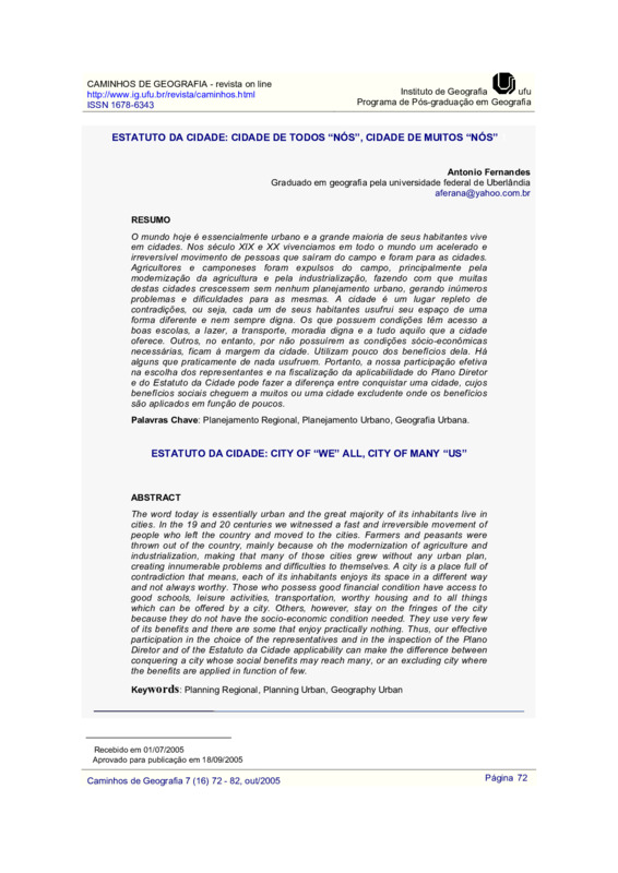 ESTATUTO DA CIDADE: CIDADE DE TODOS “NÓS”, CIDADE DE MUITOS “NÓS”