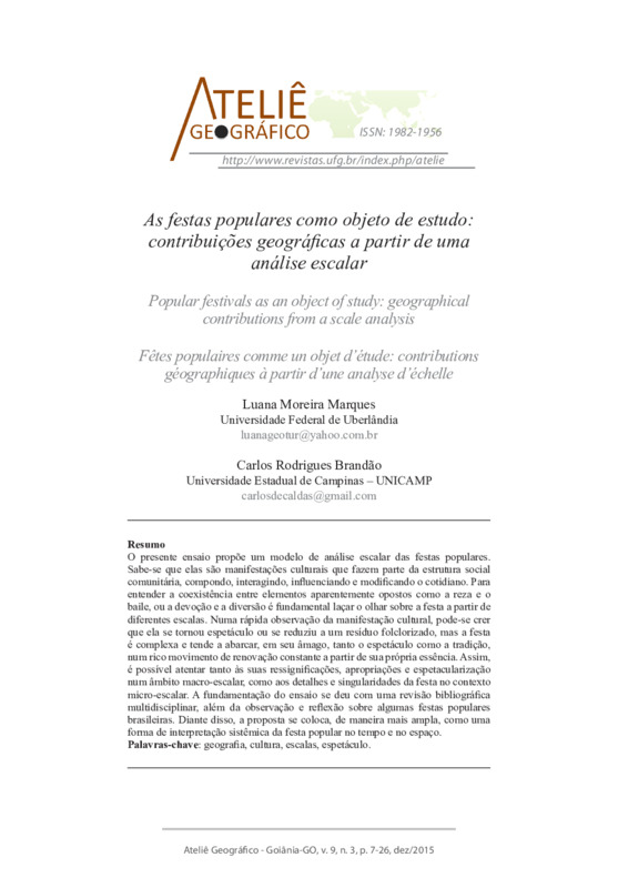 As festas populares como objeto de estudo: contribuições geográficas a partir de uma análise escalar - DOI 10.5216/ag.v9i3.33822