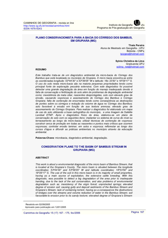 PLANO CONSERVACIONISTA PARA A BACIA DO CÓRREGO DOS BAMBUS, EM GRUPIARA (MG)