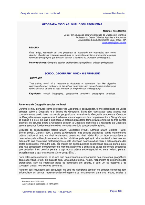 objetivo abordar os principais problemas da geografia escolar e apresentar algumas