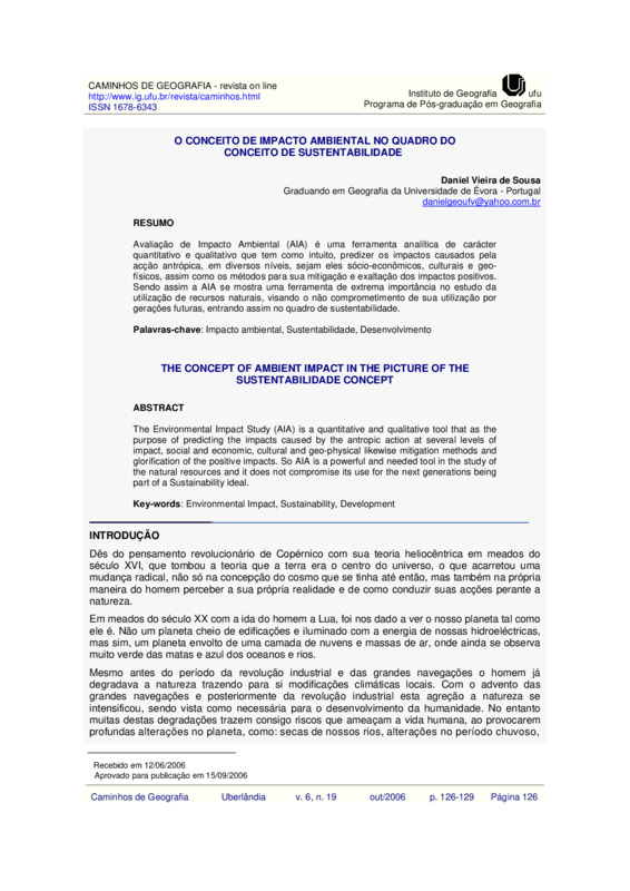 Palavras-chave: Impacto ambiental, Sustentabilidade, Desenvolvimento
