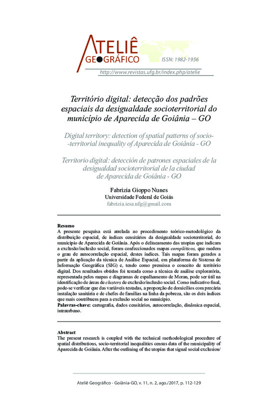 Território digital: detecção dos padrões espaciais da desigualdade socioterritorial do município de Aparecida de Goiânia – GO