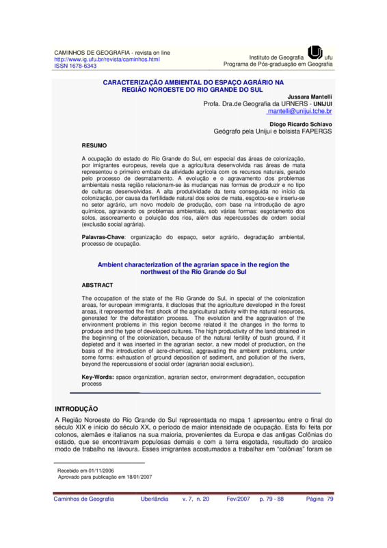 CARACTERIZAÇÃO AMBIENTAL DO ESPAÇO AGRÁRIO NA REGIÃO NOROESTE DO RIO GRANDE DO SUL / Ambient characterization of the agrarian space in the region the northwest of the Rio Grande do Sul