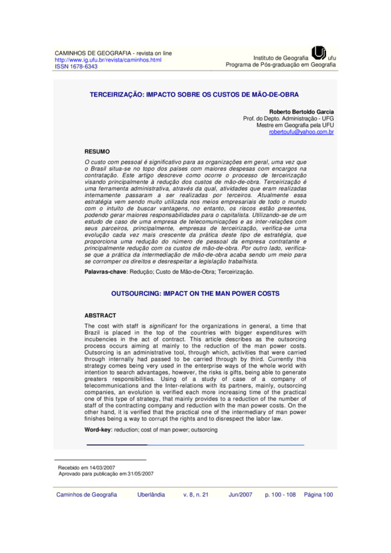 O custo com pessoal é significativo para as organizações em geral, uma vez que o Brasil situa-se no topo dos países com maiores despesas com encargos na contratação. Este artigo descreve como ocorre o processo de terceirização visando principalmente à redução dos custos de mão-de-obra. Terceirização é uma ferramenta administrativa, através da qual, atividades que eram realizadas internamente passaram a ser realizadas por terceiros. Atualmente essa estratégia vem sendo muito utilizada nos meios empresariais de todo o mundo com o intuito de buscar vantagens, no entanto, os riscos estão presentes, podendo gerar maiores responsabilidades para o capitalista. Utilizando-se de um estudo de caso de uma empresa de telecomunicações e as inter-relações com seus parceiros, principalmente, empresas de terceirização, verifica-se uma evolução cada vez mais crescente da prática deste tipo de estratégia, que proporciona uma redução do número de pessoal da empresa contratante e principalmente redução com os custos de mão-de-obra. Por outro lado, verifica-se que a prática da intermediação de mão-de-obra acaba sendo um meio para se corromper os direitos e desrespeitar a legislação trabalhista.