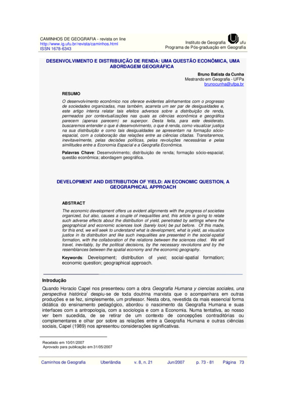 Desenvolvimento e distribuição de renda: uma questão econômica, uma abordagem geográfica