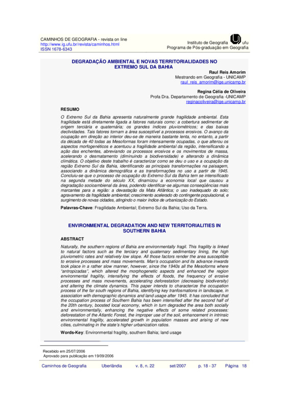 Degradação ambiental e novas territorialidades no extremo sul da Bahia / Environmental degradation and new territorialities in southern Bahia