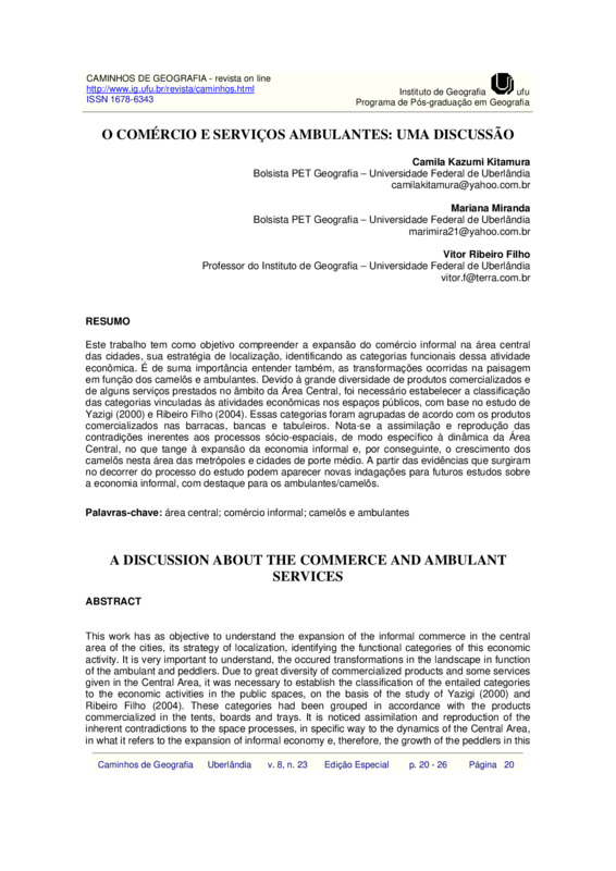 O COMÉRCIO E SERVIÇOS AMBULANTES: UMA DISCUSSÃO