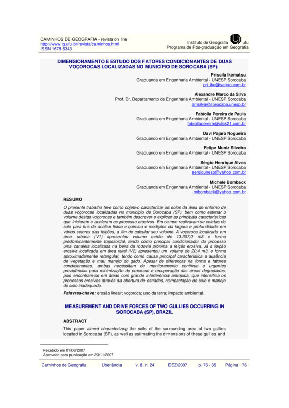 Dimensionamento e estudo dos fatores condicionantes de duas voçorocas localizadas no município de Sorocaba (SP)
