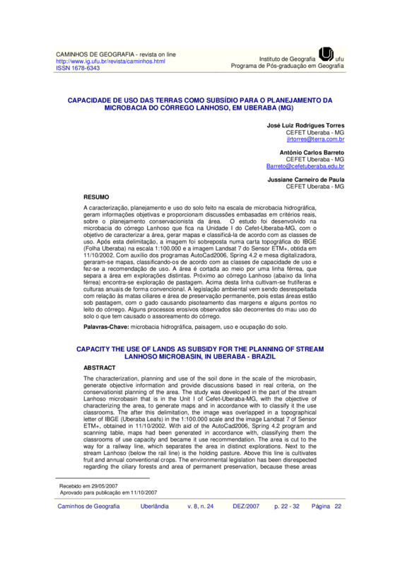 Capacidade de uso das terras como subsídio para o planejamento da microbacia do córrego Lanhoso, em Uberaba (MG)