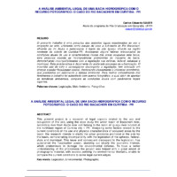 O presente trabalho é uma pesquisa dos aspectos legais relacionados ao uso e ocupação do solo, utilizando como estudo de caso a sub-bacia do Rio Bacacheri, afluente do rio Atuba e pertencente à bacia do alto Iguaçu situada na região nordeste da cidade de Curitiba-PR. Analisando alguns fatores relacionados às condições atuais de uso e características físicas das áreas ocupadas pela bacia, esta pesquisa elucida as incongruências promovidas às margens da bacia, demonstrando incompatibilidades com a legislação nas esferas, federal, estadual e municipal. Esta problemática é decorrente do acelerado processo de urbanização. O incorreto uso do solo e conseqüente desrespeito a legislação, tem colocado em cheque o poder fiscalizador estatal, destacando visivelmente o interesse econômico, que predomina em detrimento a defesa ambiental. Para melhor entendimento dos fenômenos o trabalho foi subsidiado com acervo fotográfico, o qual além de apontar as temáticas ambientais, compara as condições atuais com parâmetros legais vigentes.