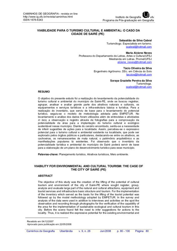 Viabilidade para o turismo cultural e ambinetal: o caso da cidade de Sairé (PE)