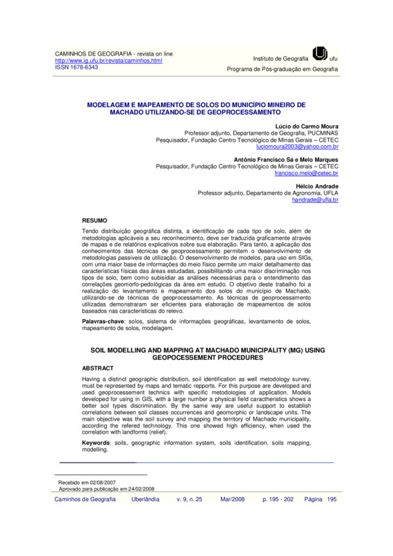 Modelagem e mapeamento de solos do municípo mineiro de Machado utilizandos-se de Geoprocessamento