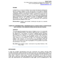 O artigo discute o conceito de Complexo Agroindustrial como base da construção de atividades agrícolas modernas no meio rural brasileiro e da definição do chamado “agronegocio. Nesse sentido, o processo de integração entre agricultura e indústria é evidenciado também na ampliação das relações intersetoriais que culminaram na estruturação de um novo padrão agrário. Nesse, a agricultura se constitui em mais um elo da dinâmica produtiva geral e o espaço agrícola passa a ser comandado pela lógica da ampliação das relações capitalistas no campo. As transformações no setor agroindustrial resultaram na superação conceitual da terminologia Complexo Agroindustrial. O caso do Estado do Paraná e a participação das cooperativas agropecuárias têm destaque na discussão.