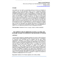 O TERRITÓRIO E SUAS DIMENSÕES POLÍTICA, CULTURAL E ECONÔMICA: UM EXERCÍCIO ANALÍTICO NO SUDOESTE DO PARANÁ