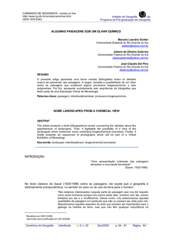 Algumas paisagens sob um olhar químico / SOME LANDSCAPES FROM A CHEMICAL VIEW