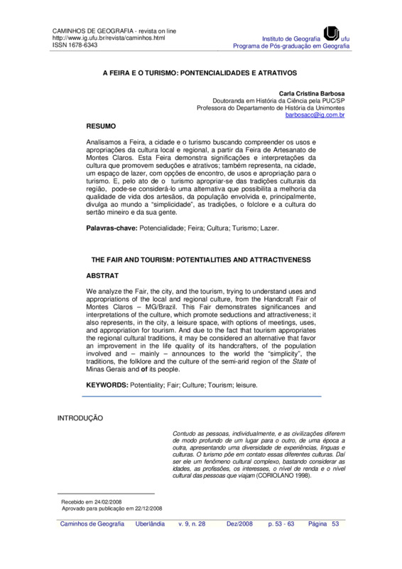 A Feira e o Turismo: Pontencialidades e Atrativos / THE FAIR AND TOURISM: POTENTIALITIES AND ATTRACTIVENESS