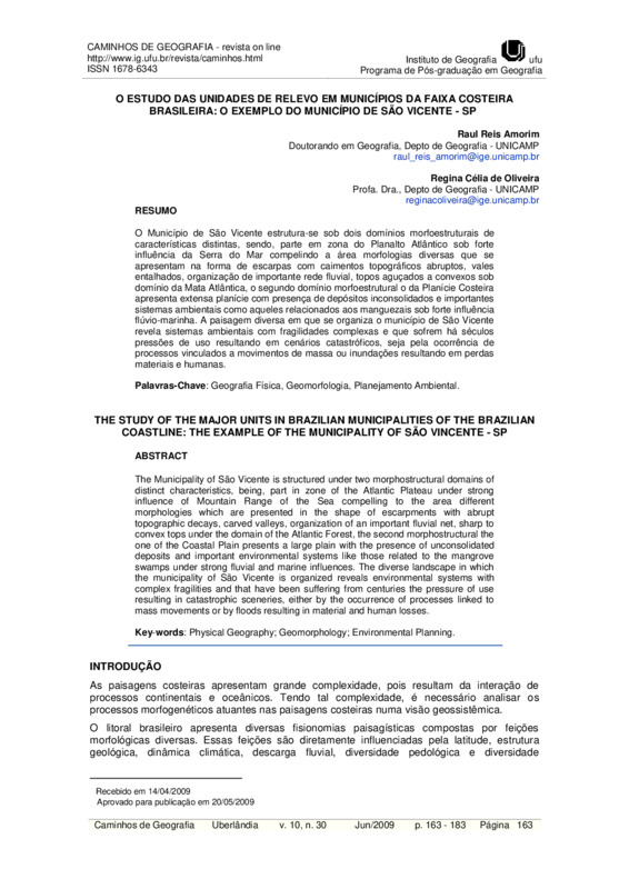 O estudo das unidades de relevo em municípios da faixa costeira brasileira: o exemplo do município de são Vicente - SP / THE STUDY OF THE MAJOR UNITS IN BRAZILIAN MUNICIPALITIES OF THE BRAZILIAN COASTLINE: THE EXAMPLE OF THE MUNICIPALITY OF SÃO VINCENTE - SP
