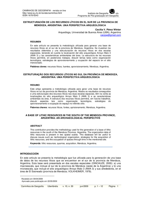 ESTRUTURAÇÃO DOS RECURSOS LÍTICOS NO SUL DA PROVÍNCIA DE MENDOZA, ARGENTINA: UMA PERSPECTIVA ARQUEOLÓGICA