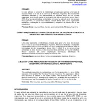 Este artigo apresenta a metodologia utilizada para gerar uma base de recursos líticos no sul da província de Mendoza, Argentina. Mostra os resultados conseguidos e uma estruturação dos recursos líticos nas duas escalas espaciais, têm na conta as localizações do sitio arqueológico Arroyo Malo 3 (AMA 3) e as características ambientais da área. A estrutura dos recursos líticos permitirá, em futuros trabalhos, discutir aspectos tais como organização tecnológica, estratégias do aprovisionamento e ocupação do espaço no referido sítio.