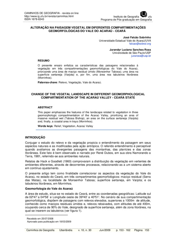 Palavras-chave: Relevo, Vegetação, Vale do Acaraú.
