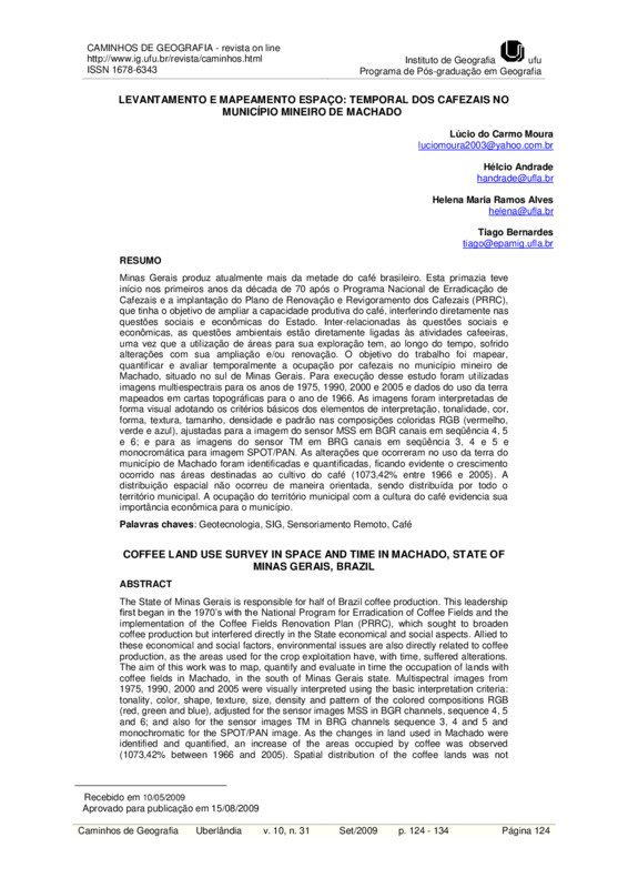 Levantamento e mapeamento espaço: temporal dos cafezais no município mineiro de Machado