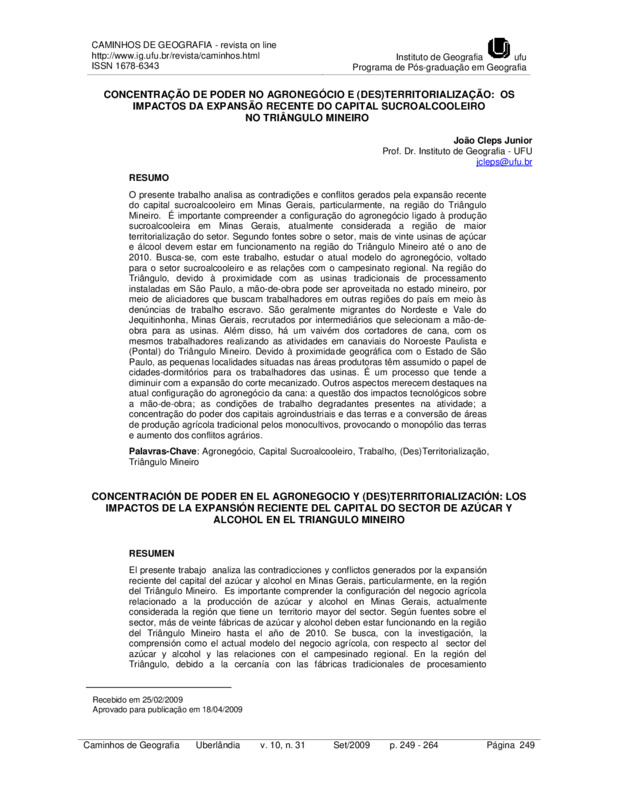 Concentração de poder no agronegócio e (des)territorialização: os impactos da expansão recente do capital sucroalcooleiro no Triângulo Mineiro