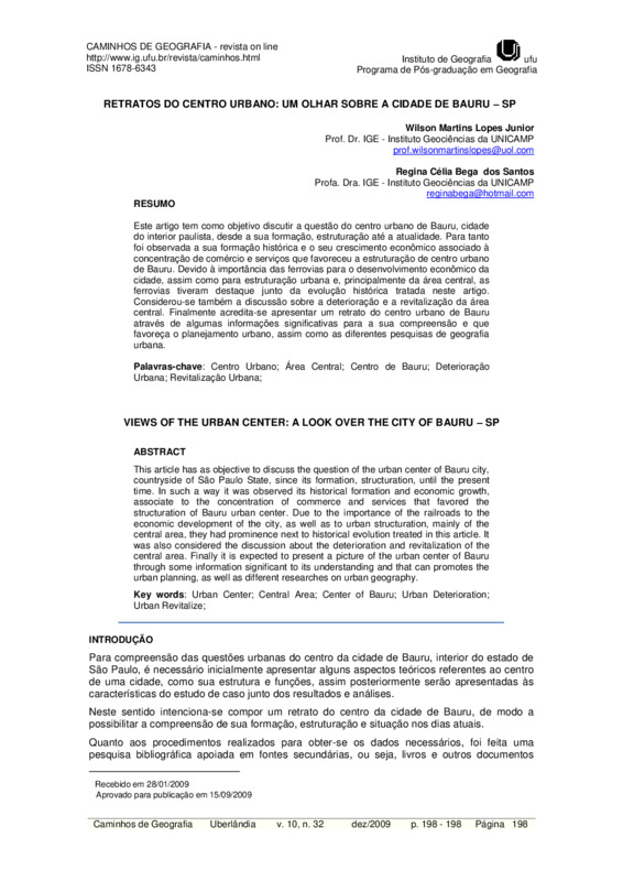 Retratos do centro urbano: um olhar sobre a cidade de Bauru - SP / VIEWS OF THE URBAN CENTER: A LOOK OVER THE CITY OF BAURU – SP