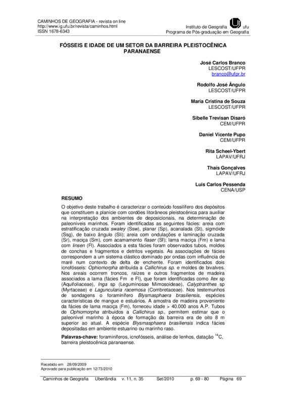 Fósseis e idade de um setor da barreira pleistocênica paranaense - FOSSILS AND AGE OF A PARANÁ PLEISTOCENIC BARRIER SECTOR