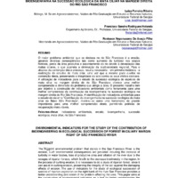 O maior problema ambiental que se destaca no rio São Francisco é a erosão, tais conseqüências ambientais são fornecidas entre elas o aumento da turbidez nos corpos hídricos, perda da área produtiva e assoreamento do rio devido à devastação das matas ciliares, o que acarreta a diminuição da biodiversidade na região. No processo de contenção da erosão, é necessário ser feito um estudo da mata ciliar, uma vez que a mesma pode auxiliar na contenção da erosão, preservando a integridade do solo contra os efeitos danosos da erosão. A utilização de indicadores para o estudo da sucessão ecológica de espécies de mata ciliar na margem direita do rio São Francisco oferece uma melhor compreensão e dimensão do problema que atinge a área. O presente trabalho tem por objetivo a construção de indicadores ambientais como ferramenta para uma melhor compreensão da contribuição da bioengenharia na sucessão ecológica na margem direita do Rio São Francisco. A identificação de indicadores ambientais para o estudo do sistema “contribuição da bioengenharia na sucessão ecológica da mata ciliar no Baixo São Francisco”, mostrou-se como uma ferramenta de grande importância para uma melhor compreensão do sistema, permitindo práticas de recuperação mais viáveis.